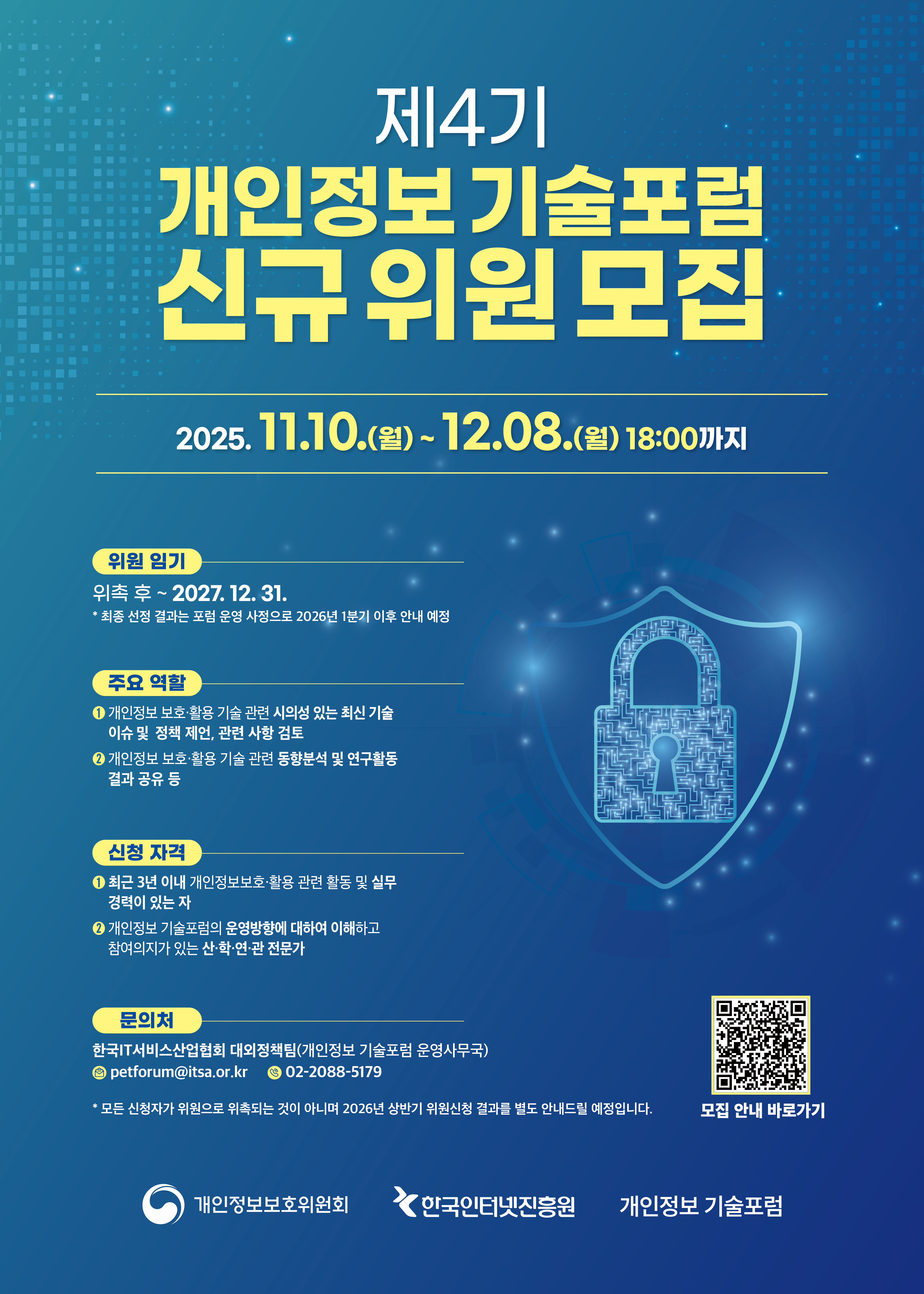 - [마감][개인정보 기술포럼] 제4기 신규위원 신청·추천 안내(11/10~12/8) |