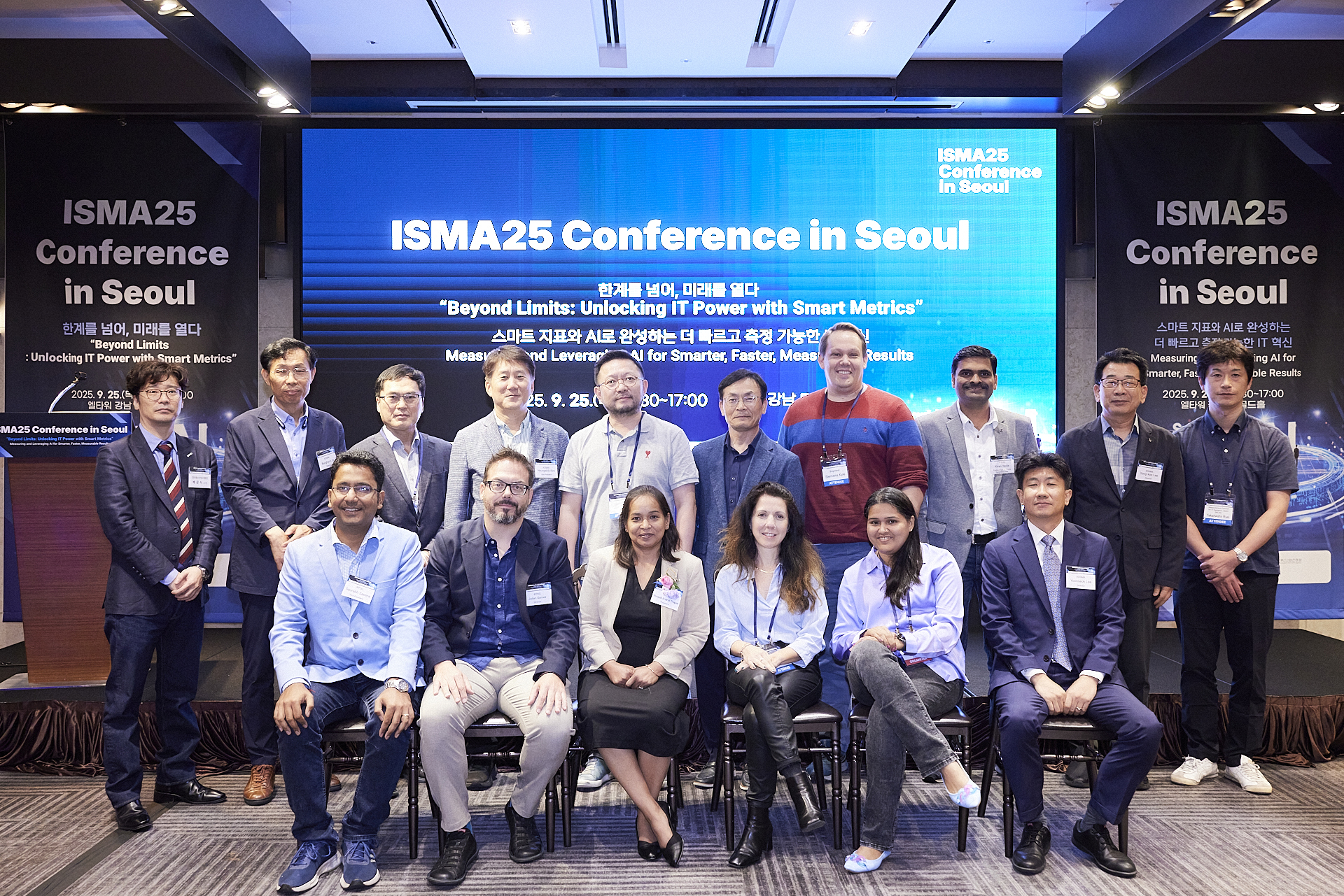 한국소프트웨어측정원과 정보통신산업진흥원은 국제기능점수전문가그룹(IFPUG)과 함께 ‘더욱 스마트하고 빠르며 측정 가능한 결과를 위한 AI 측정 및 활용’이라는 주제로 “ISMA 컨퍼런스 2025 in Seoul” 행사를 9월 25일(목요일) 엘타워 골드홀에서 성공리에 개최하였다.