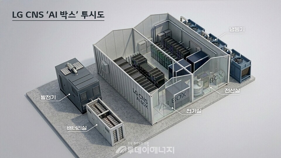 [투데이에너지 김원빈 기자] LG CNS(대표 현신균)가 컨테이너 1동에 GPU 576장을 수용할 수 있는 소형 데이터센터 ‘AI 박스’를 선보이며 국내외 AI 데이터센터 시장 확대에 나선다고 5일 밝혔다.