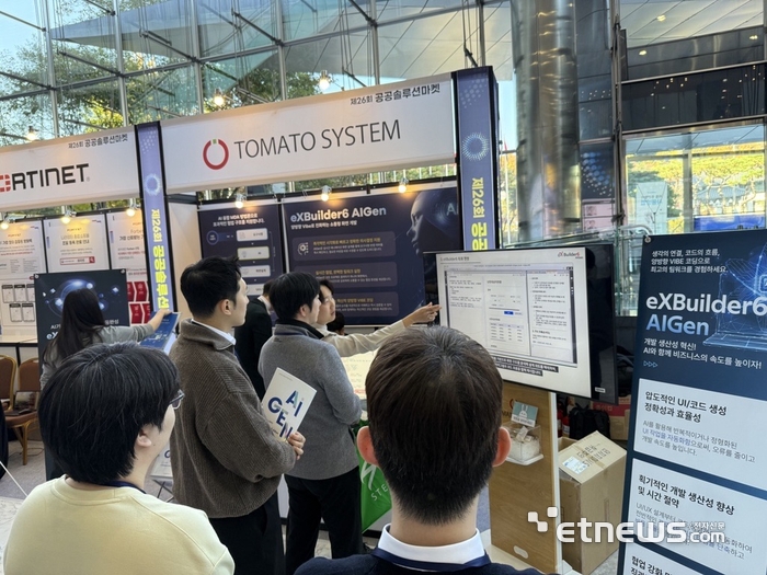 AI 소프트웨어 및 디지털 헬스케어 전문기업 토마토시스템(대표 조길)은 지난 14일 서울 코엑스에서 열린 '제26회 공공솔루션마켓'에 참가해, 자사의 AI기반 UI·UX 개발 플랫폼 '엑스빌더6 아이젠(eXBuilder6 AIGen)'을 선보였다고 17일 밝혔다.